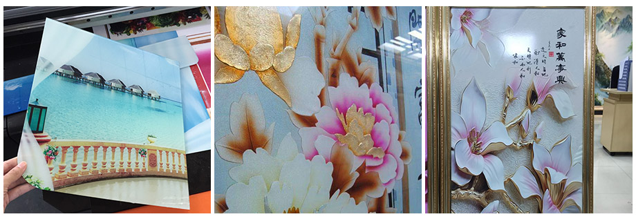 玻璃UV彩印机在打印玻璃印花有着更好的艺术效果,玻璃UV彩印机可以在玻璃表面打印更丰富的色彩以及3d浮雕效果和微晶效果,镜像打印反正打印正面观看,耐磨耐刮持久美观。