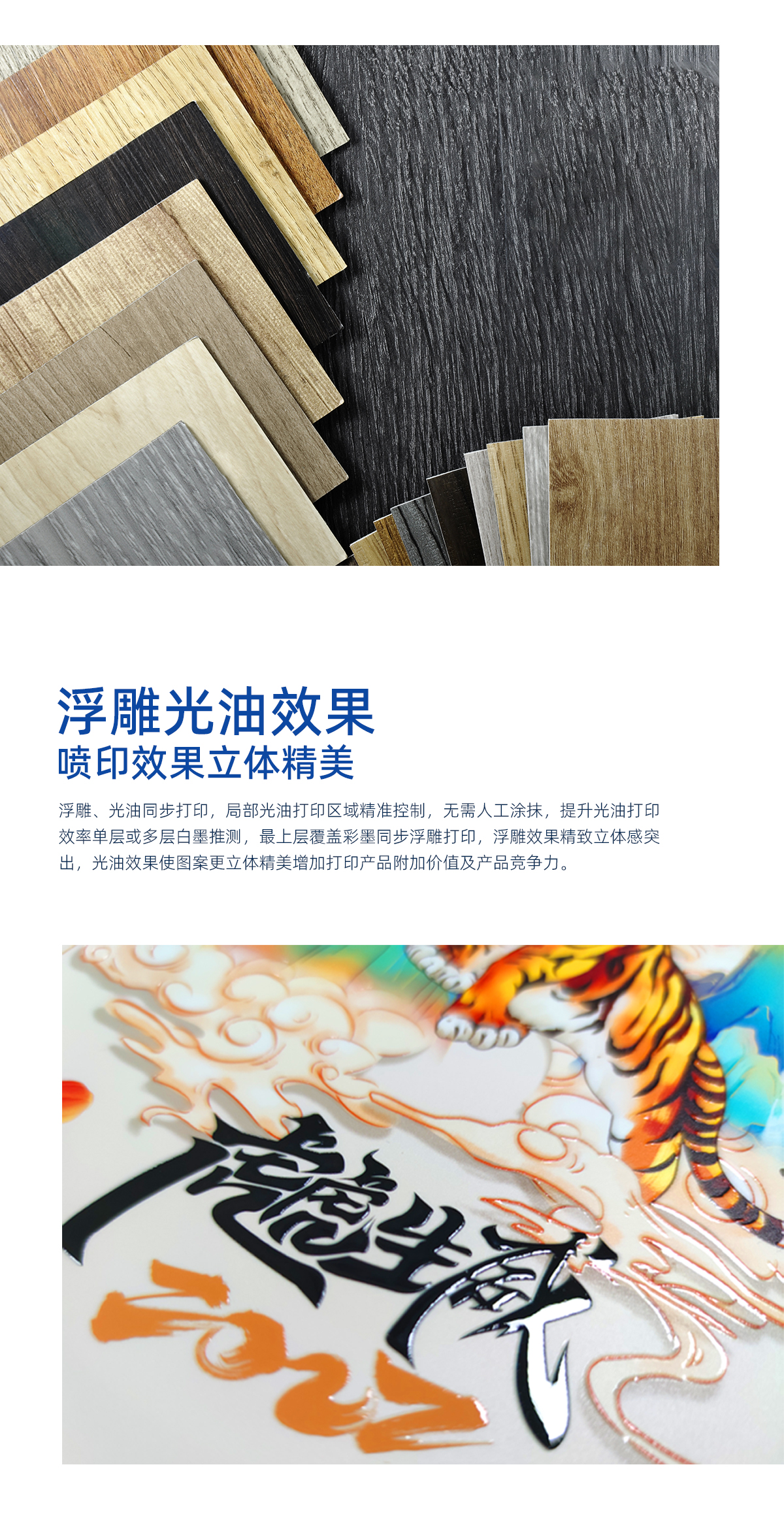 产品描述:打印尺寸1m*1m,小巧机身灵活应对多种打印需求,稳定高效,白彩光油同步打印,高分辨率彩印效果,打印图像效果细腻清晰。